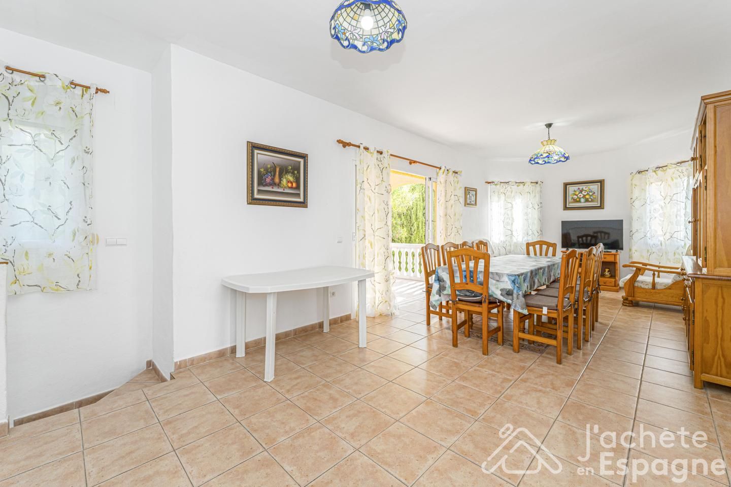 Un deuxième salon-salle à manger avec accès direct à l'espace extérieur.
